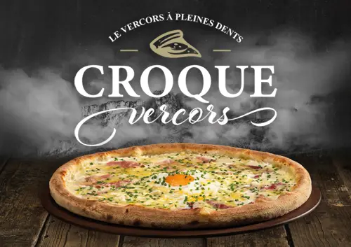 Avec la Croque Vercors, notre chef a voulu fusionner tradition et innovation culinaire, réinventant le classique Croque Madame avec une sélection méticuleuse d’ingrédients emblématiques du Vercors et de l’Ardèche. Cette pizza est une célébration du savoir-faire local, une invitation à explorer les saveurs de notre région, où le fondant du fromage Vercorais s’allie à la richesse et au goût distinct du jambon d’Ardèche.